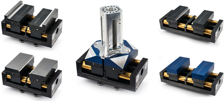 Das sehr tief gebaute Piranha Clamp Nullspannsystem stellt für jeden Zentrumspanner die optimale Schnittstelle zur Maschine dar und ermöglicht eine Wiederholgenauigkeit von 0.01 mm.